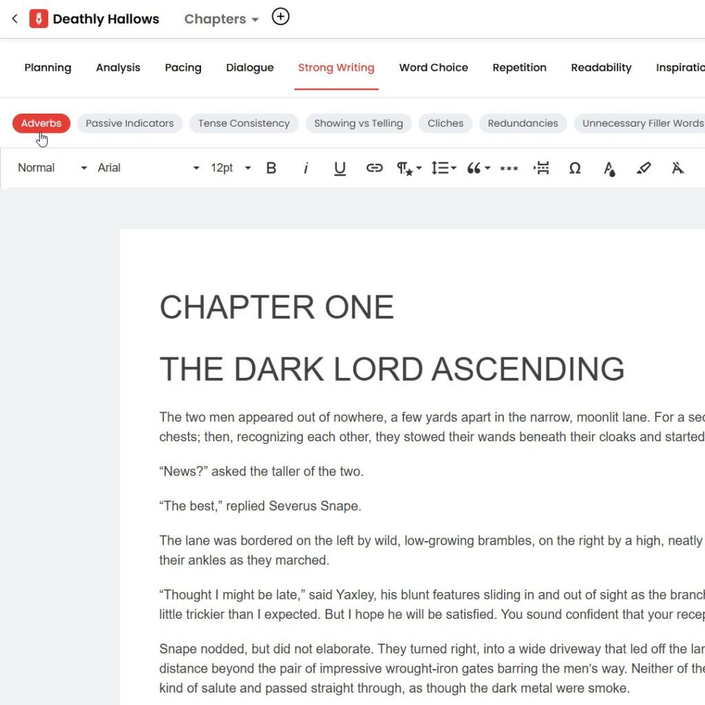With AutoCrit’s specialized tools, you can choose to have your editing guidance focus on the needs and expectations defined by bestselling works of fantasy.