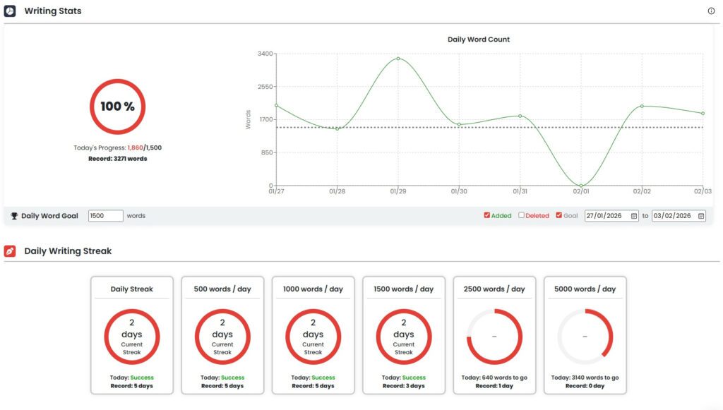 You'll see your writing streaks build, watch your momentum grow, and feel that satisfying hit of accomplishment every time you hit your mark.
